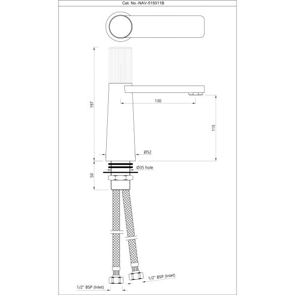 Basin Mixer without Popup Waste With 375mm Long Braided Hoses