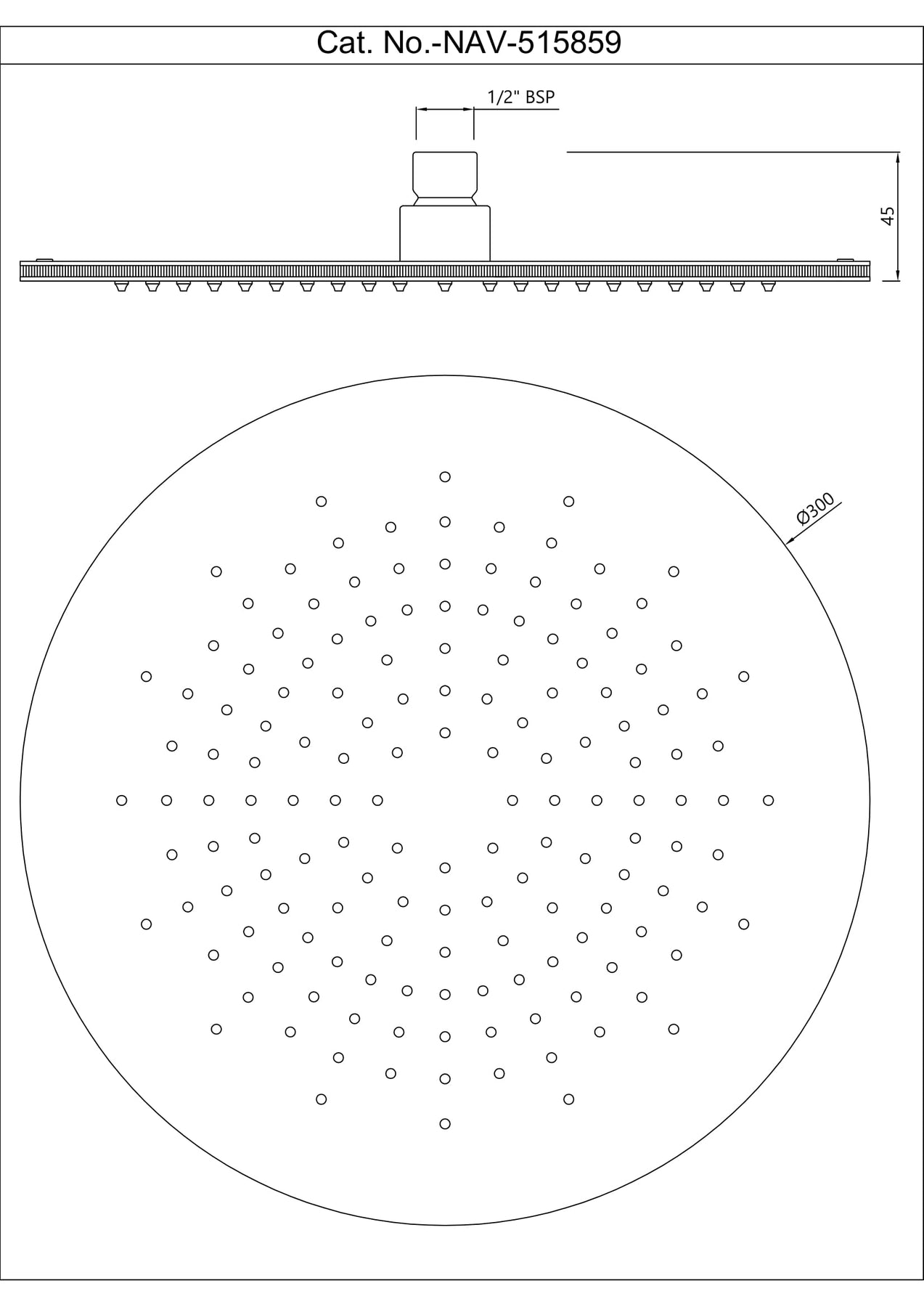 Navia Single Function 300mm Round Shape Overhead Shower, AISI 304 stainless steel