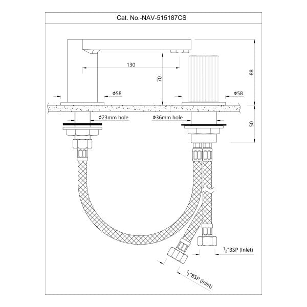2-Hole Basin Mixer with Extended Round Spout without Popup Waste